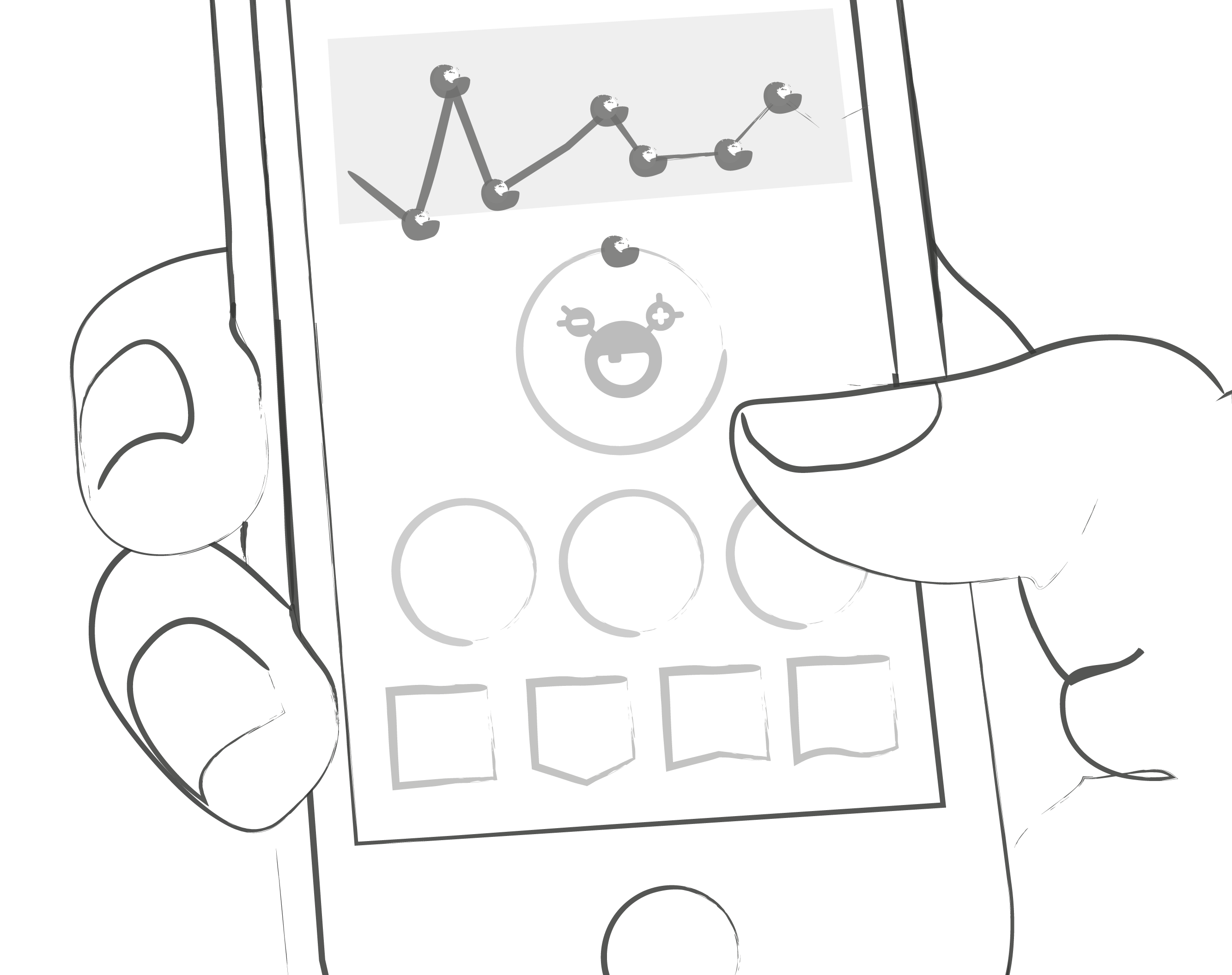 Die beiden Haupt-Elemente auf dem Dashboard sind die Lupe, um Einträge zu suchen (mySugr Pro), und der Plus Button, um neue Einträge zu machen.